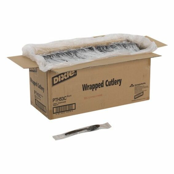 The Dixie® Heavy Weight Polypropylene Disposable Plastic Cutlery offers exceptional strength and rigidity for both hot and cold foods. Its size and elegant design deliver an upscale user experience, making it an economical alternative to permanent ware . The wrapping helps prevent cross-contamination while its compact packaging requires minimal storage space. Sophisticated black color.
