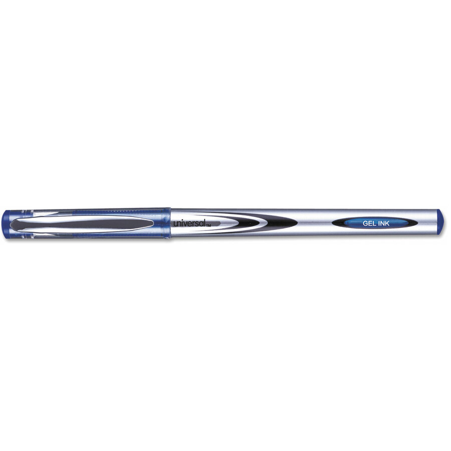 Universal Gel Pen, Stick, Medium 0.7 mm, Blue Ink, Silver/Blue Barrel, Dozen